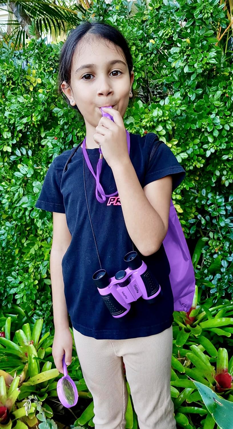 - 🐞BINOCULARS - 5x30 magnification glass optical lenses for viewing nature up close with flexible rubber eye pieces protecting delicate eye area. Shock resistant with nonslip grip ergonomically designed for small hands. Binoculars come with lanyard for easy carrying and a protective soft case that can attach to a belt. Lightweight and easy to use for hours of carefree fun for boys and girls.