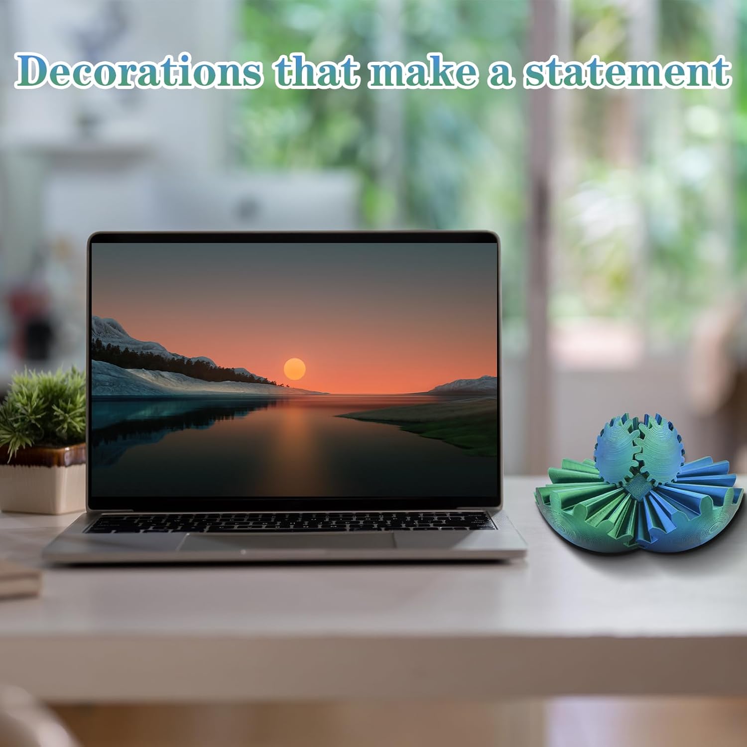 - Vibrant 3D Printed Gear Sphere: Our gear sphere is crafted using advanced 3D printing technology, resulting in a colorful and eye-catching design. Its unique aesthetic makes it a standout piece in any setting.