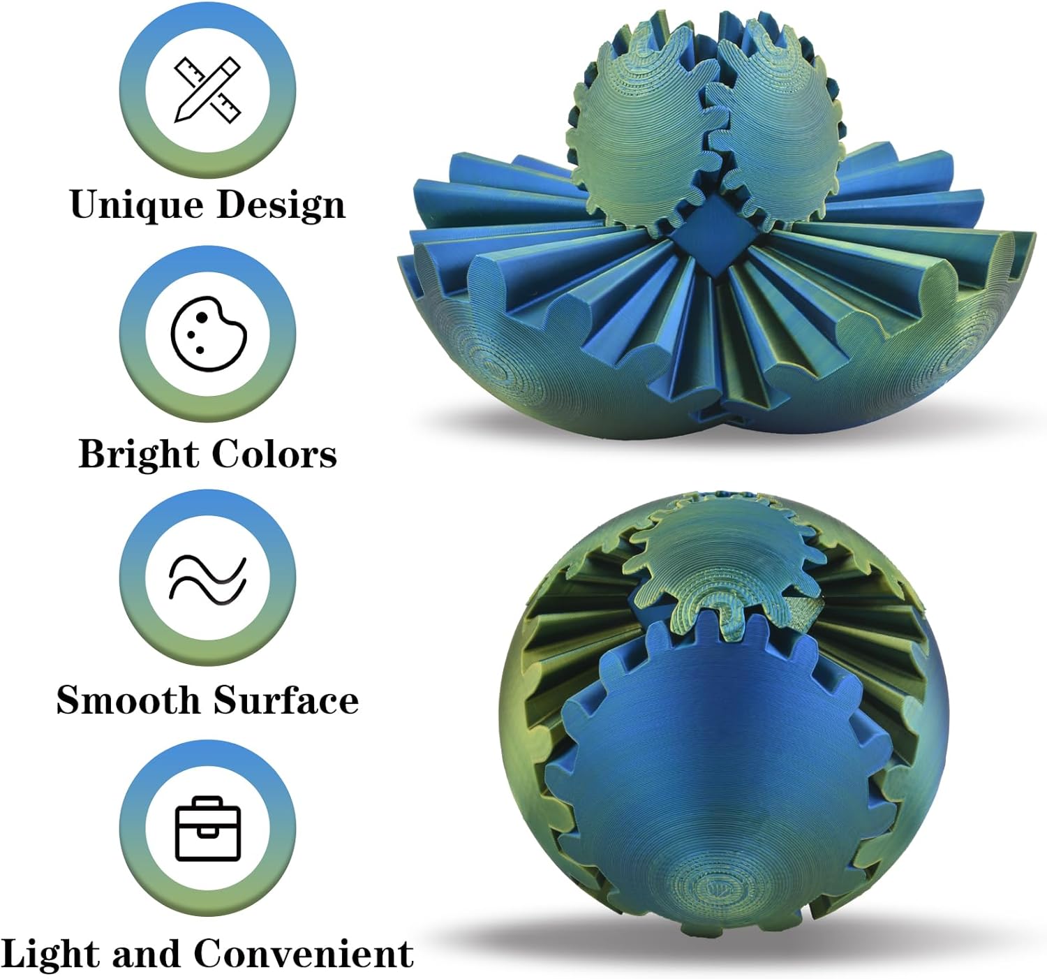 - Vibrant 3D Printed Gear Sphere: Our gear sphere is crafted using advanced 3D printing technology, resulting in a colorful and eye-catching design. Its unique aesthetic makes it a standout piece in any setting.