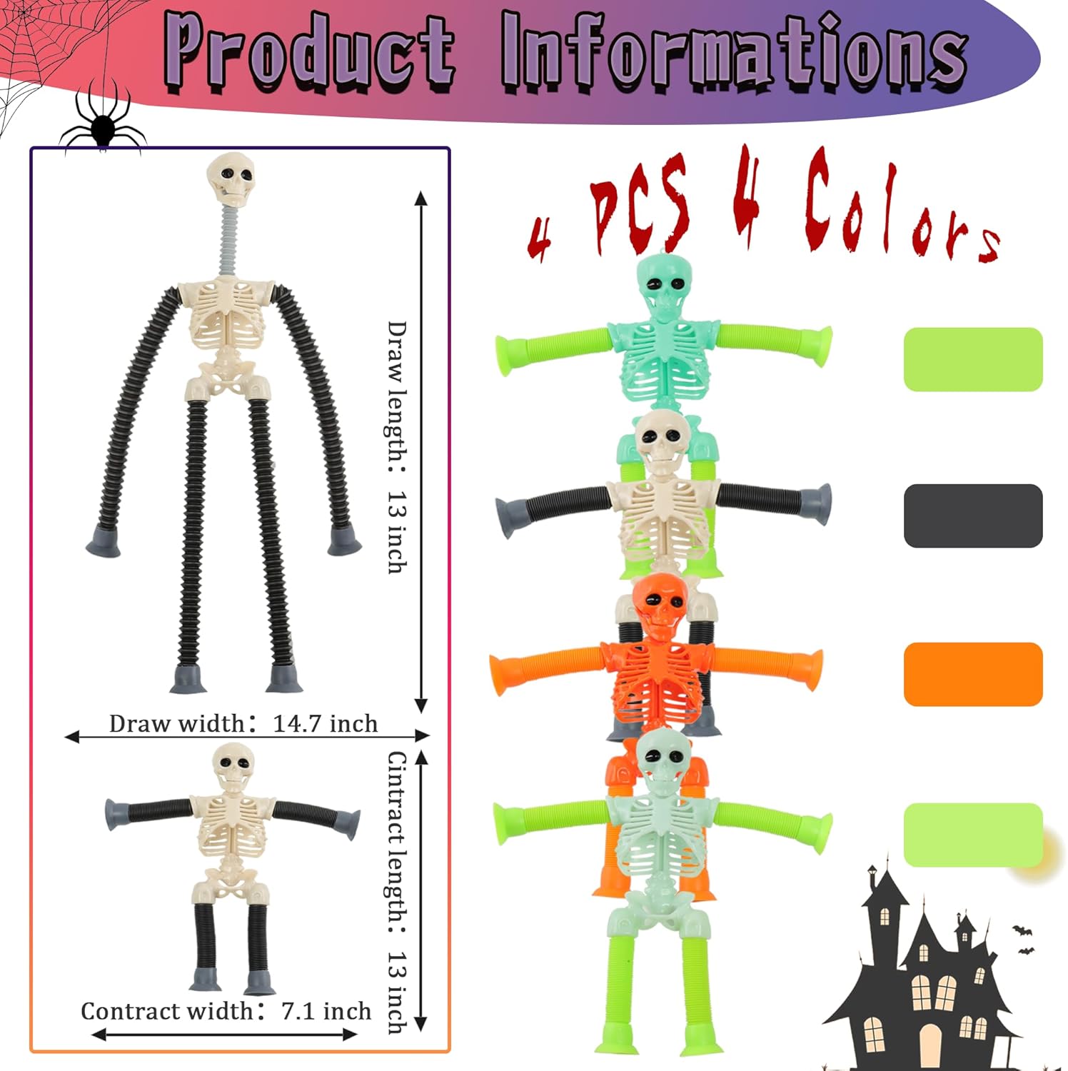 4PCS Telescopic Suction Cup Skeleton Toys, Shape Changing Telescopic Pop Tube Halloween Skeleton Fidget Toys, Skeleton Action Figure for Halloween Party Favors Kids Toddler Gift