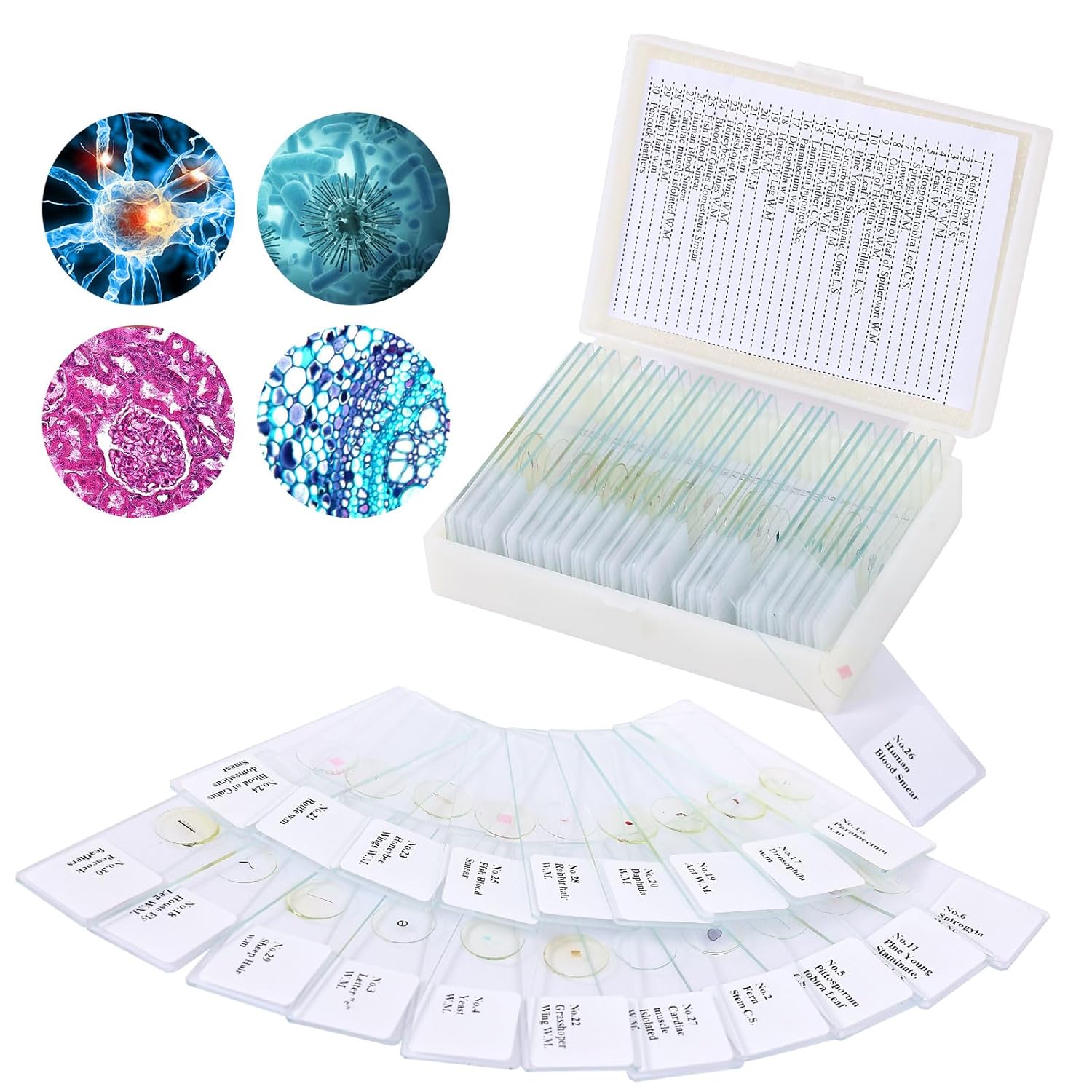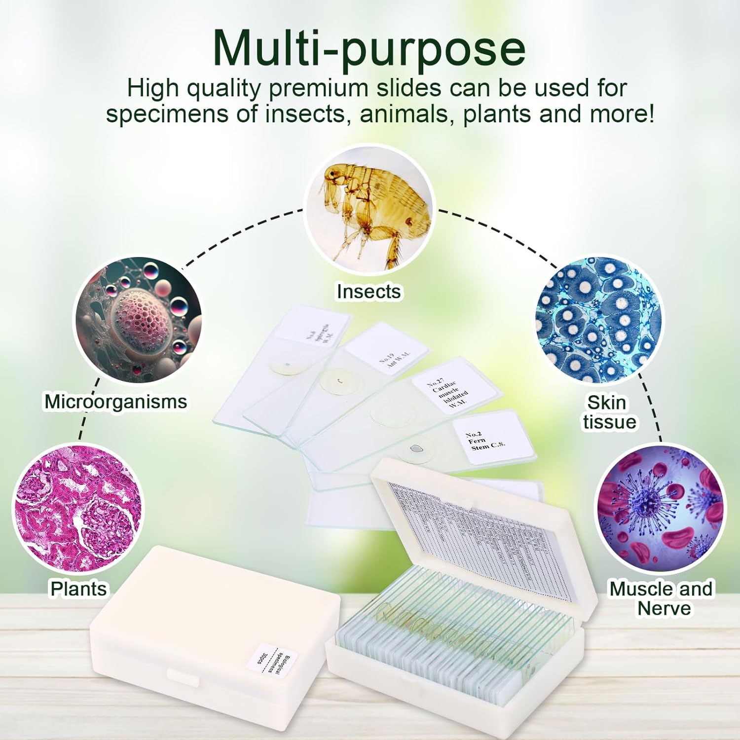- 【Rounded Edges】The edges of the microscope slides with specimens are carefully polished, not sharp, which can prevent cuts to the hands, can be a perfect fit for a variety of microscopes, ideal for children and adults to use