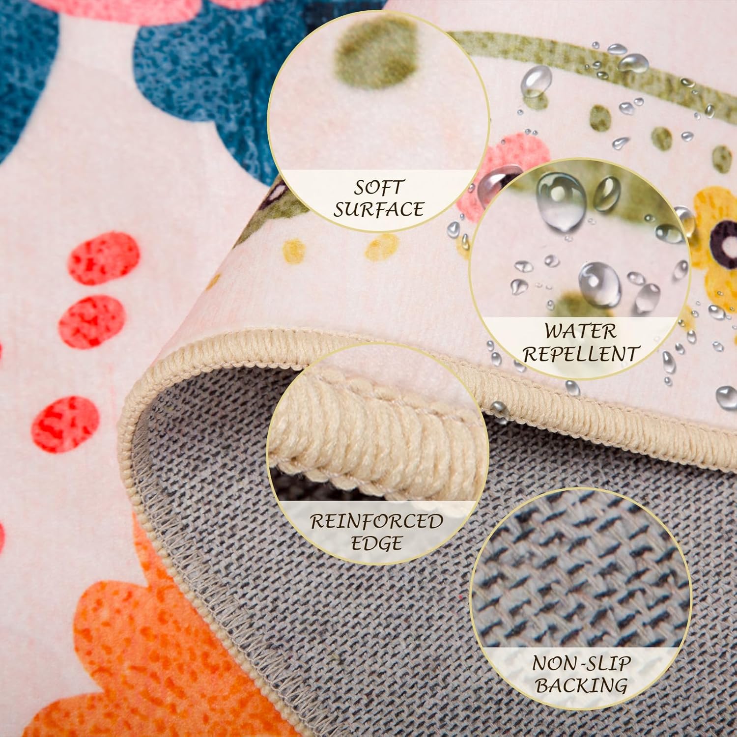 - Machine Washable:The runner rugs are machine washable,allowing for both machine wash and hand wash options.It is recommended to wash them in cold water.This floral rug is crafted with a low pile that won’t block opening and closing doors, make machine wash possible. Small stains can be blotted with a rag,soft-bristled brush,vacuum,or robotic vacuum cleaner.Avoid using bleach and high-temperature ironing