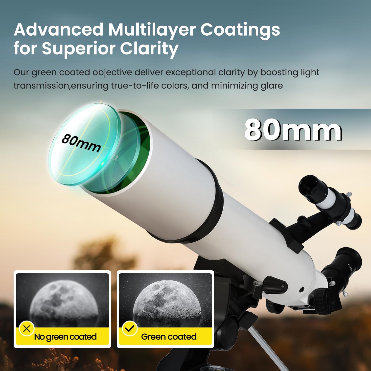 ESAKO Telescope for Adults & Kids, Astronomical Portable 80mm Aperture Beginners Telescope with Phone Adapter, Wireless Remote & Carry Bag