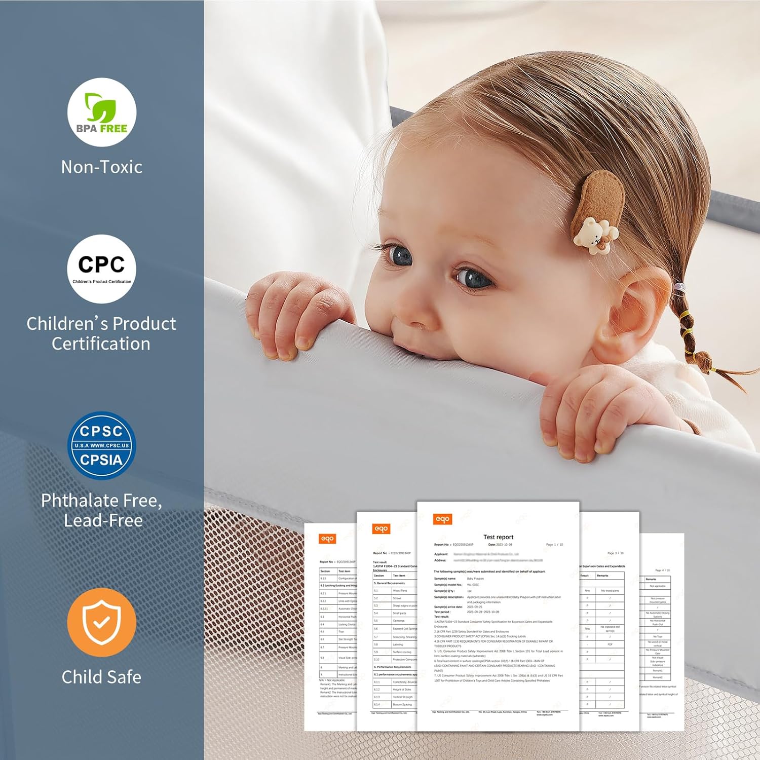 - [HEALTHY & PORTABLE]: Constructed with high-quality, non-toxic materials—including sturdy steel frames and easy-to-clean Oxford cloth—this portable baby play yard folds effortlessly for travel, allowing you to take it wherever you go while ensuring your child’s safety and comfort.