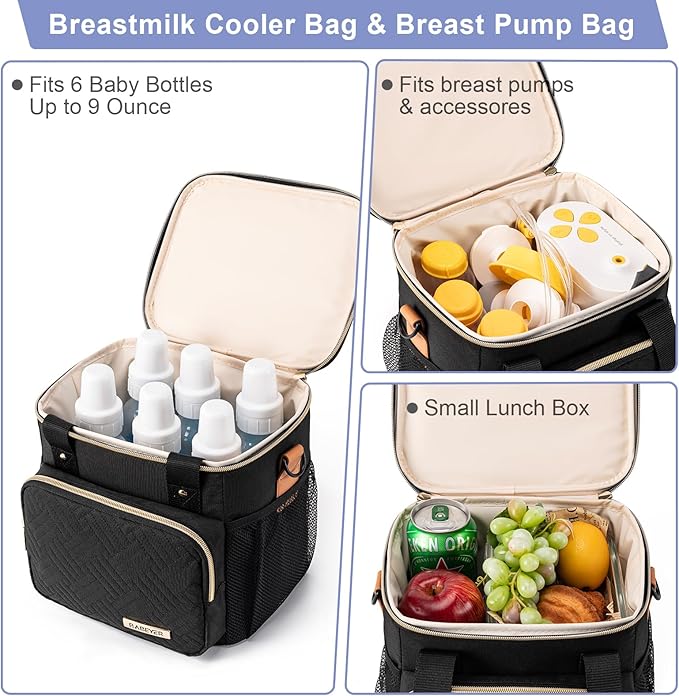 Breastmilk Cooler Bag with Ice Pack Fits 6 Baby Bottles up to 9 Ounce, Breast Milk Pump Cooler Bag for Nursing Mom Daycare, Work, Travel-Black