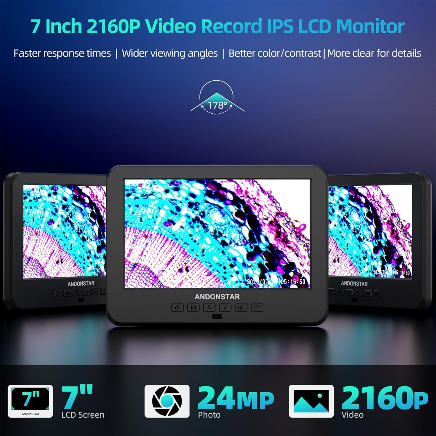 Andonstar AD266S 20X-5000X HDMI Digital Microscope, 5 Lens 2160P UHD Video Record, 7'' LCD Microscope for Adults Kids, Home Lab Biological Kit with Slides, Coin Full View