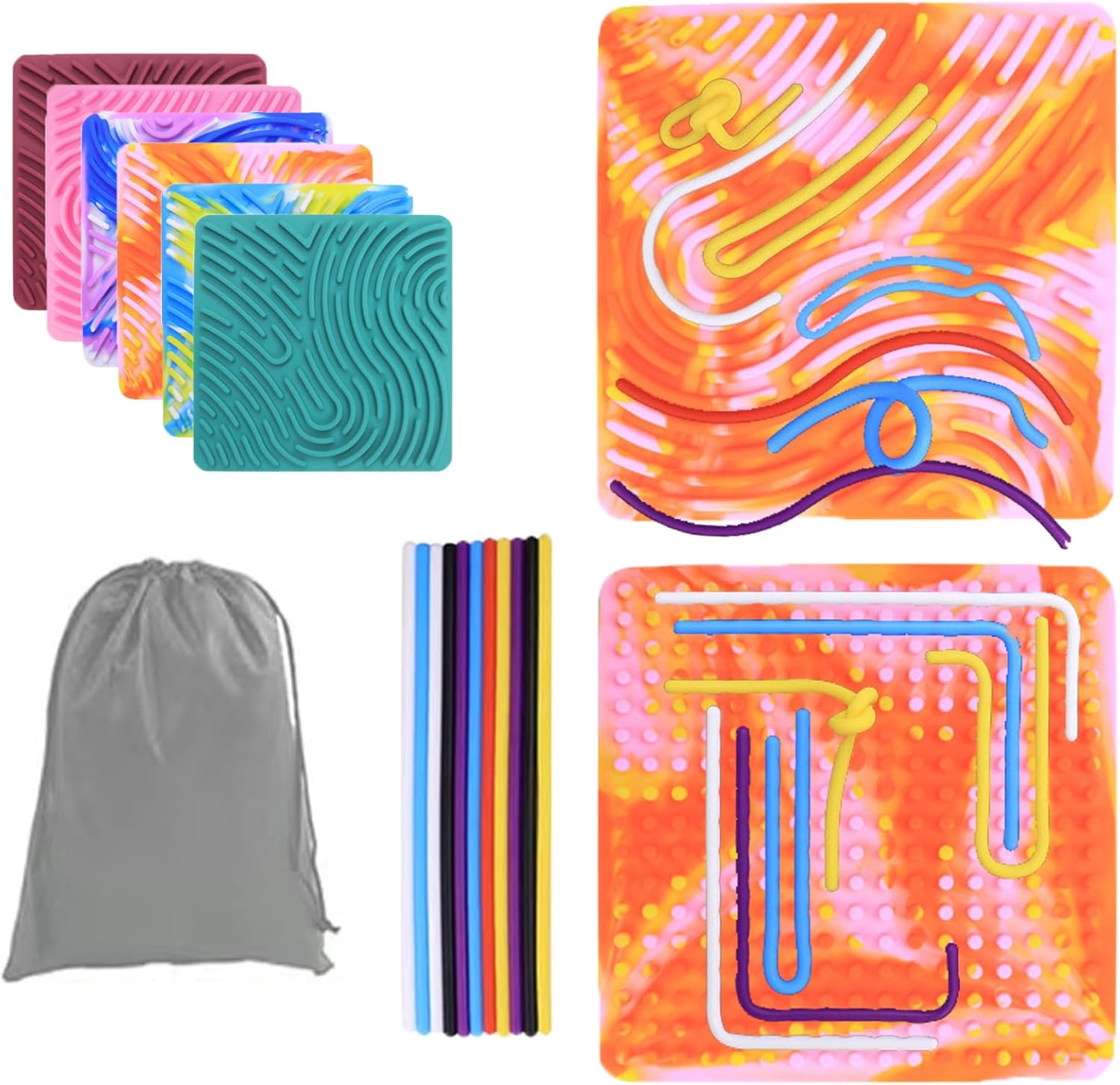 Sensory Activity Board, Silicone Fidget Toy Silent, No Mess for Calming/Stress/Anxiety/ADHD & Autism Kids & Adults, Travel Sensory Activity Board with Portable Storage Bag & 20 Strings