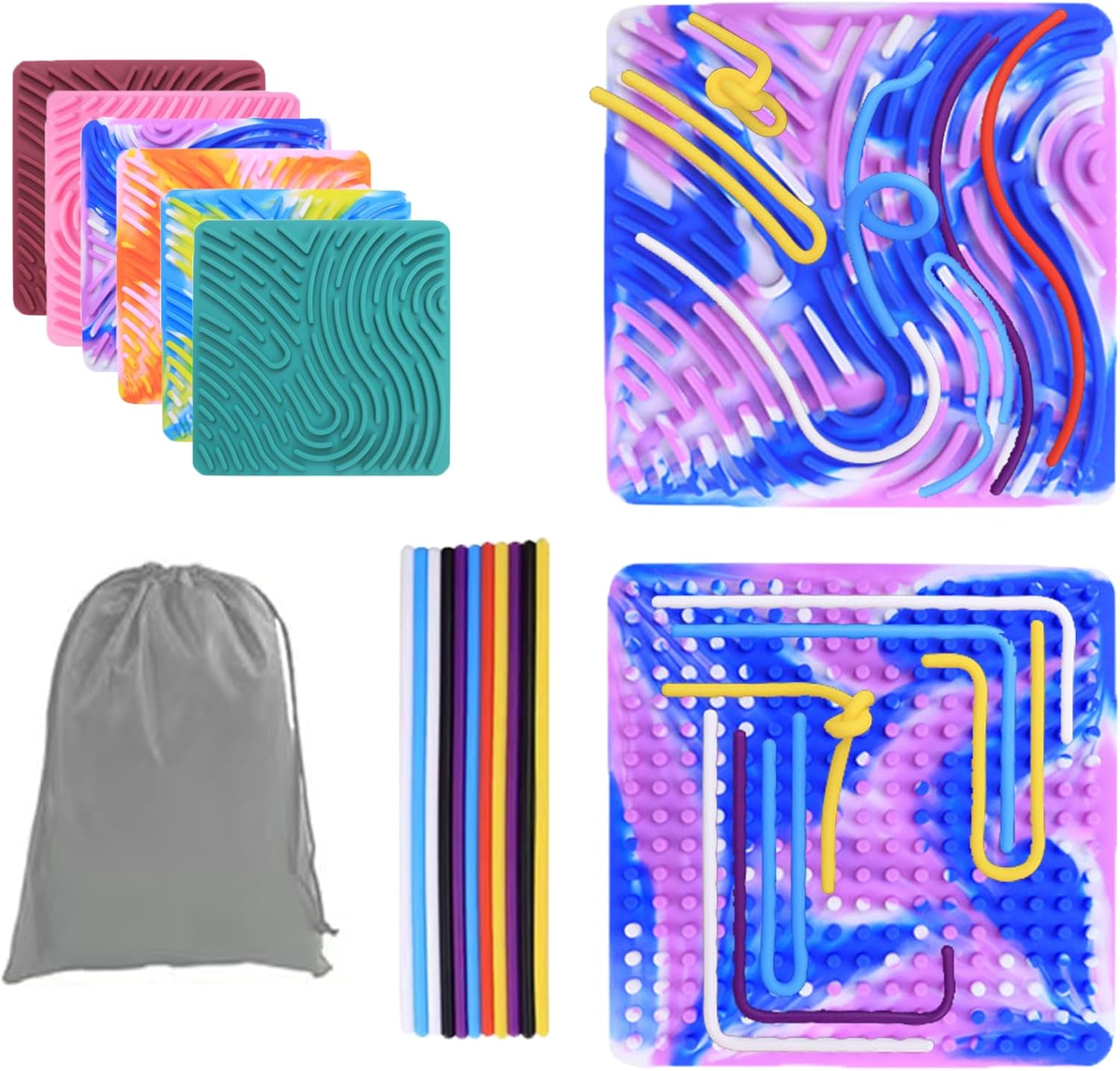 Sensory Activity Board, Silicone Fidget Toy Silent, No Mess for Calming/Stress/Anxiety/ADHD & Autism Kids & Adults, Travel Sensory Activity Board with Portable Storage Bag & 20 Strings