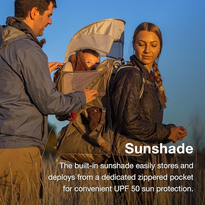 - Built-in Sunshade - The built-in sunshade easily stores and deploys from a dedicated zippered pocket for convenient UPF 50 sun protection
