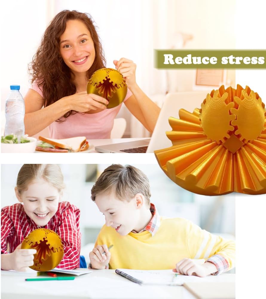 3D Printed Gear Ball, Gears phere Gear Ball Fidget Toy, Puzzle Balls, Fidget Ball, Cube Fidget Toy ,Gear Ball Toys for Classroom Prizes, Party Birthday, Anxiety Relaxing and Stress. (Golden)