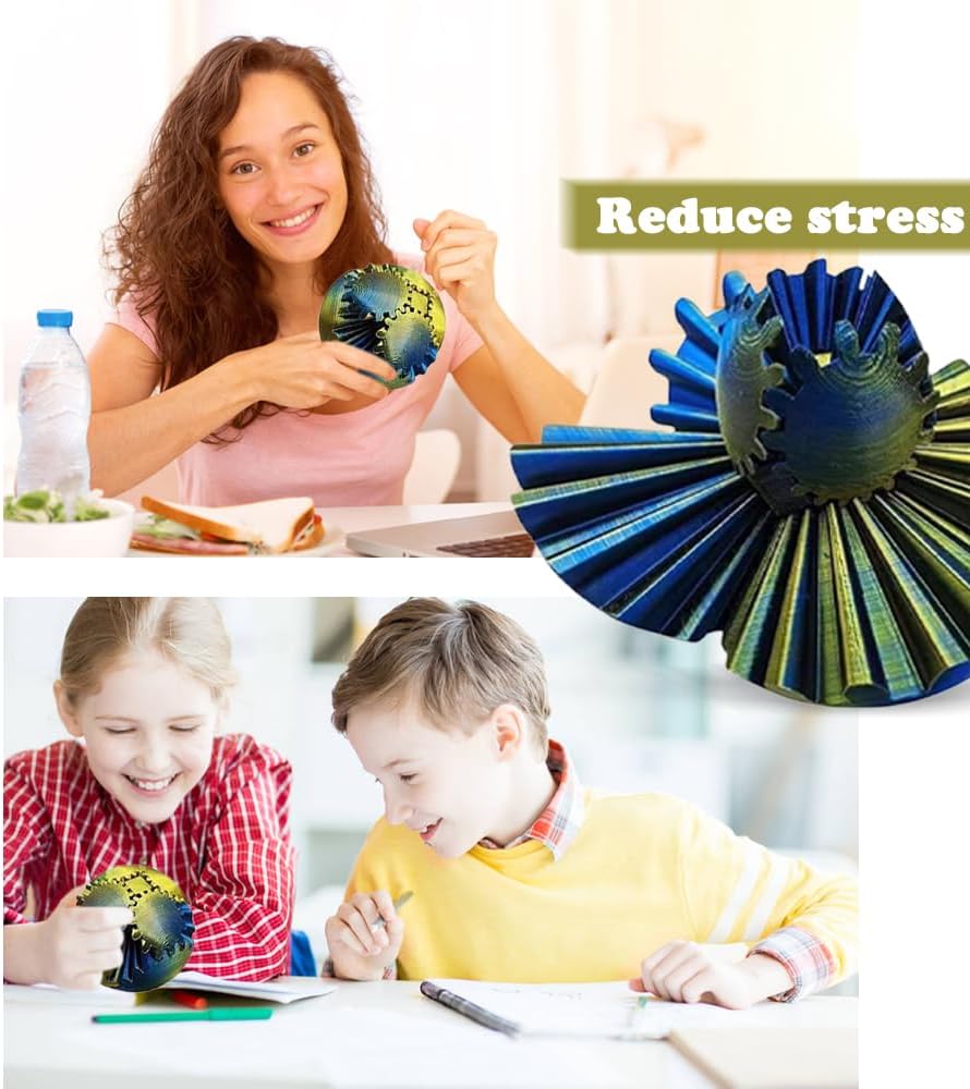 3D Printed Gear Ball, Gears phere Gear Ball Fidget Toy, Puzzle Balls, Fidget Ball, Cube Fidget Toy ,Gear Ball Toys for Classroom Prizes, Party Birthday, Anxiety Relaxing and Stress. (Blue and Yellow)