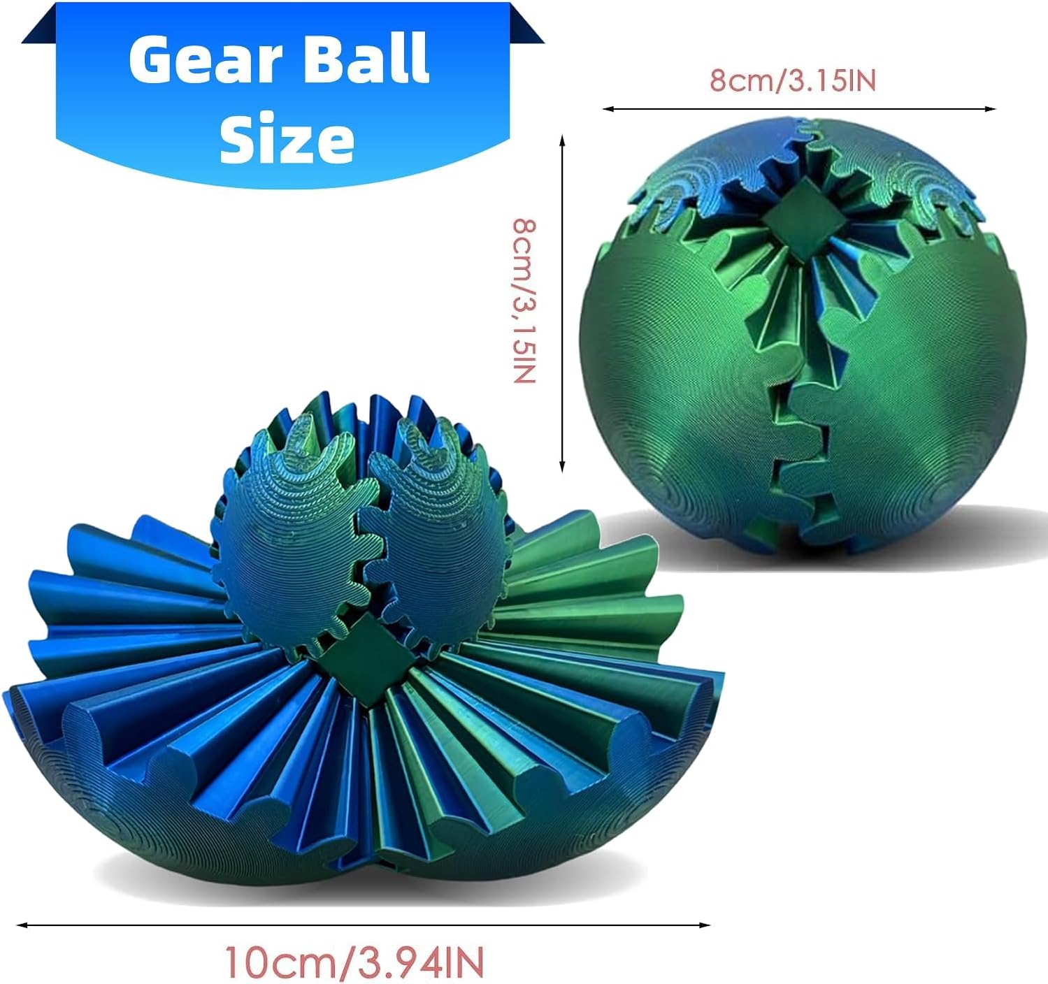 Gear Ball,Gear Sphere,3D Printed Gear Ball Gear Ball for Stress and Anxiety Relaxing Fidget Ball,3D Printed Work Fidget Toy,Activity Gear Ball for Adults & Kids (Green+Blue)