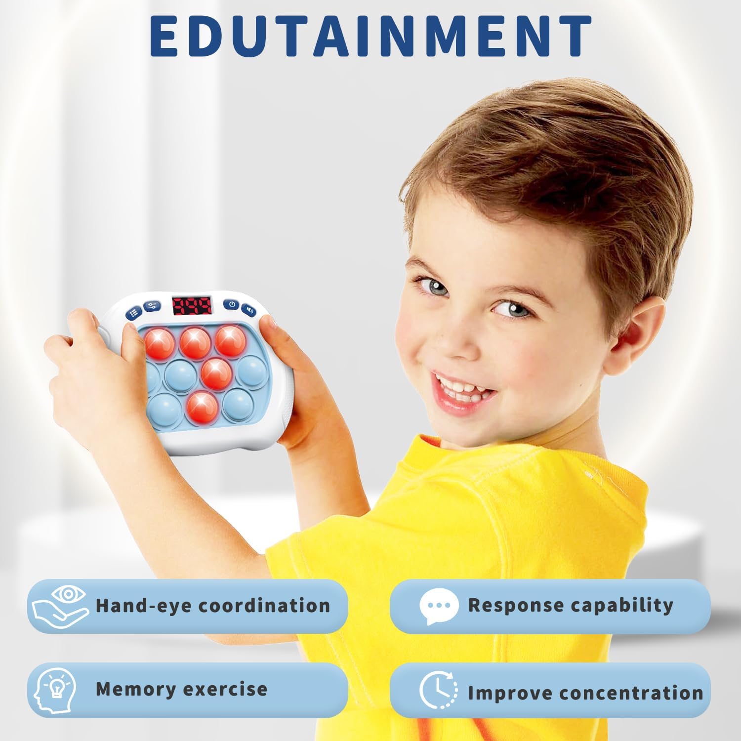 - 【Portable Fun Anywhere】:Designed for convenience, this compact and lightweight fidget toy is perfect for both indoor and outdoor play. Its ergonomic design ensures comfortable handling, making it ideal for children to carry and play with during family outings, road trips, or simply at home. Wherever kids go, the pop game controller is ready to deliver hours of entertainment.