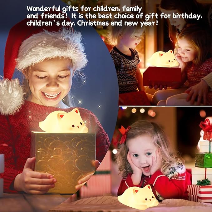 ZKLiLi Night Light for Kids Lamp, 16 Colors Cat Lamp Cute Lamp, Dimmable Baby Night Lights for Nursery,Silicone Rechargeable Nightlight for Kids Room, Kawaii Room Decor Cat Decor,Cute Gifts for Girls