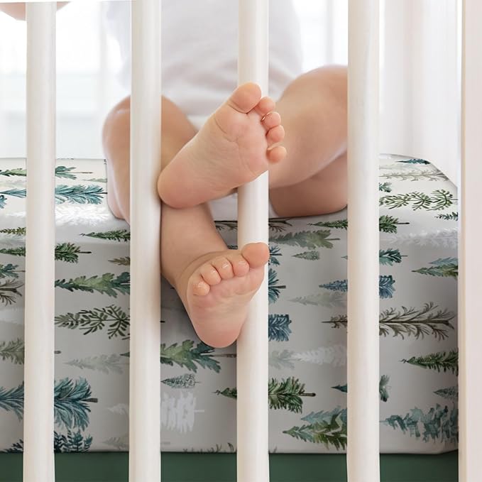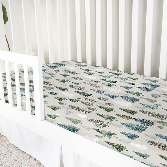 Boho Green Trees Baby Crib Sheet 52''x28'' Retro Pine Trees Stretchy Fitted Crib Mattress Cover for Boy Girl Winter Holiday Soft Baby Bed Sheets for Standard Crib and Toddler Mattresses