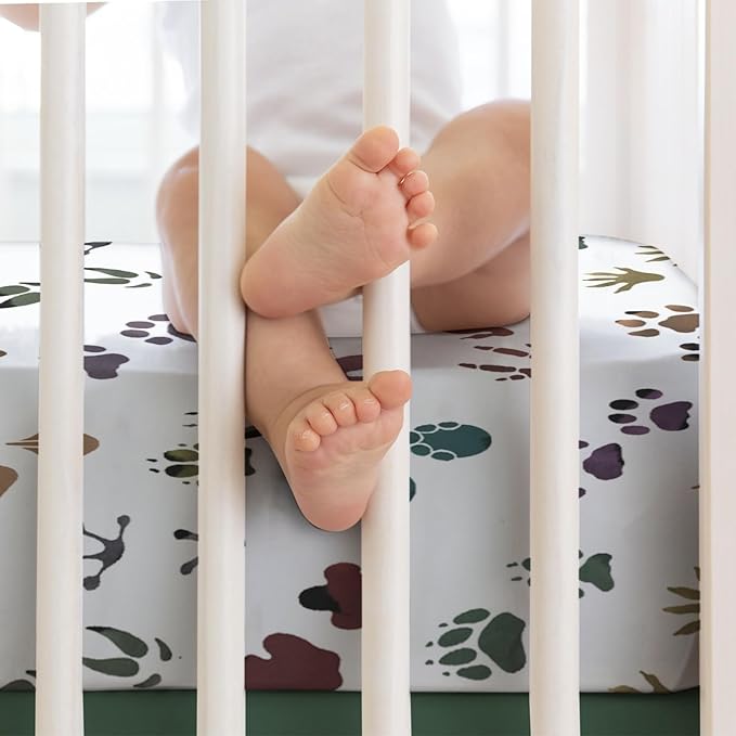 Cute Animals Tracks Baby Crib Sheets 52''x28'' Animals Footprint Snug Fitted Crib Mattress Cover for Boy Girl Wild Animals Soft Baby Bed Sheets for Standard Crib and Toddler Mattresses