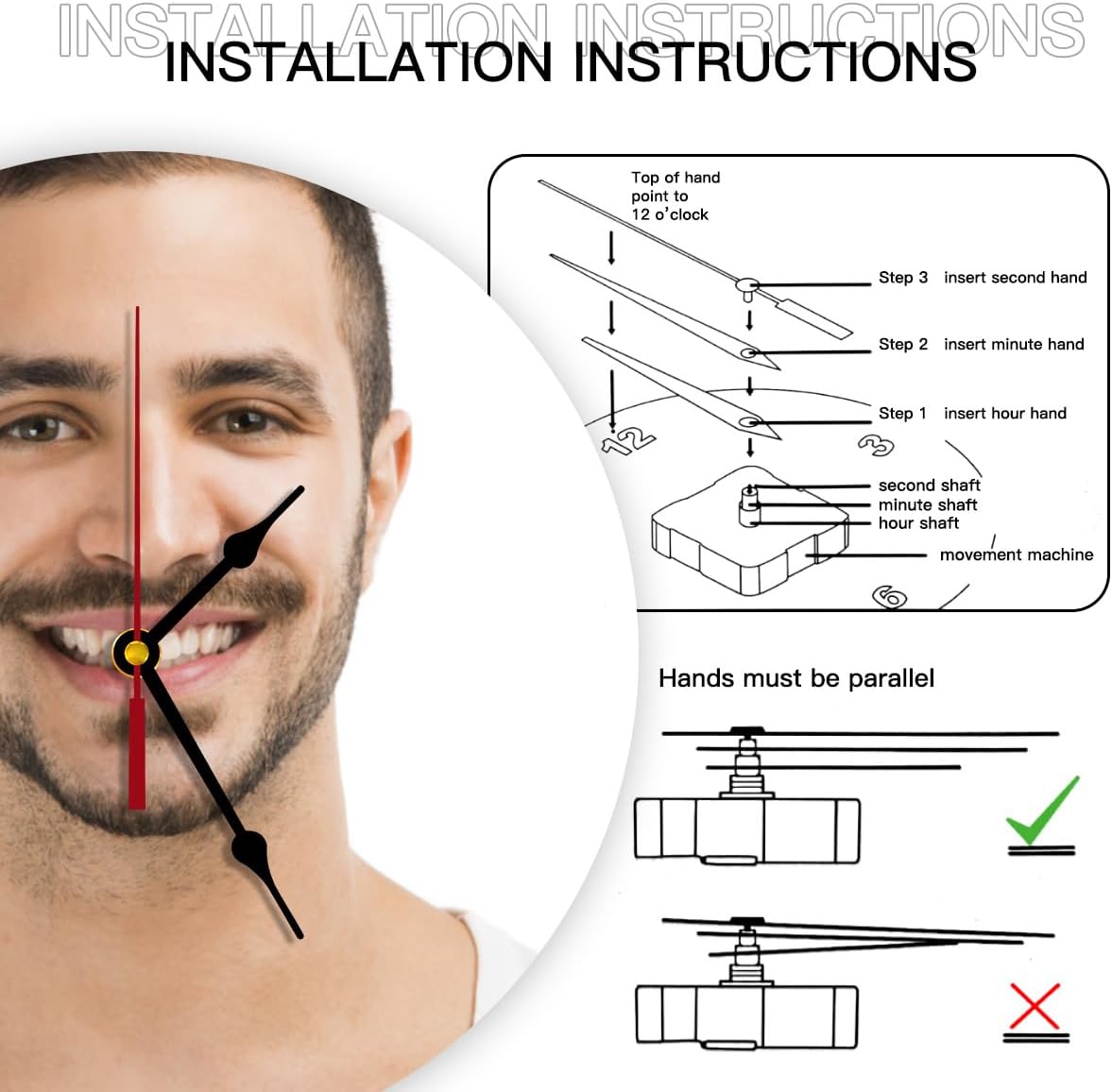 - 【Personalized pictures clocks】Please click the“customize now“button at upper,upload your customized photo and add text.Stretch photo to fill the entire printing area.Submit high definition images for better print results.