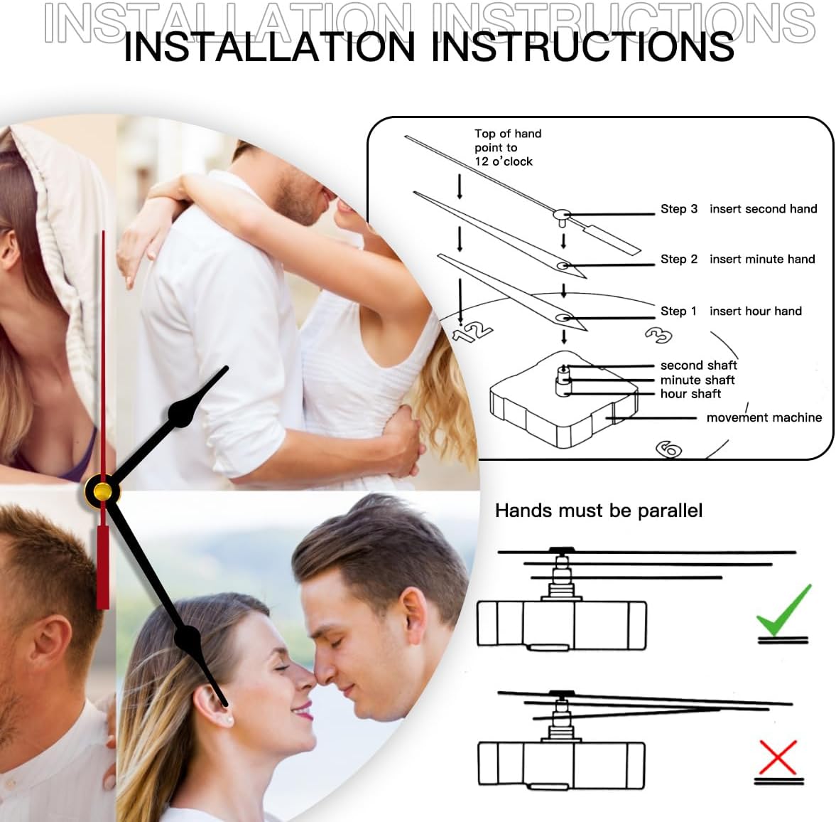 - ⏰⏰Personalized pictures clocks:Please click the“customize now“button at upper,upload your customized photo and add text.Stretch photo to fill the entire printing area.Submit high definition images for better print results.