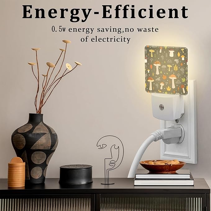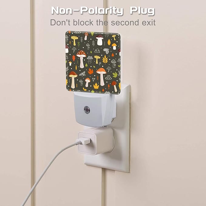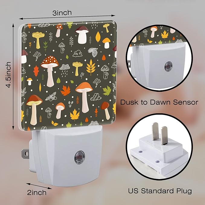 Colorful Forest Mushrooms Night Light Plug into Wall, Botanical Plants Leaves Dusk to Dawn Night Light, 0.5w Energy Saving Sleep Friendly Nightlights for Kids Boys Girls Home
