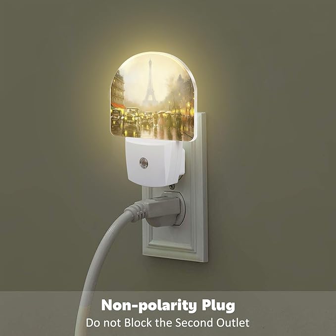 Paris Eiffel Tower Oil Painting Night Light for Kids,City Street Night View Night Light Plug in with Dusk to Dawn Sensor,0.5w Energy Saving Nightlight for Hallway Stairway Kitchen Bedroom