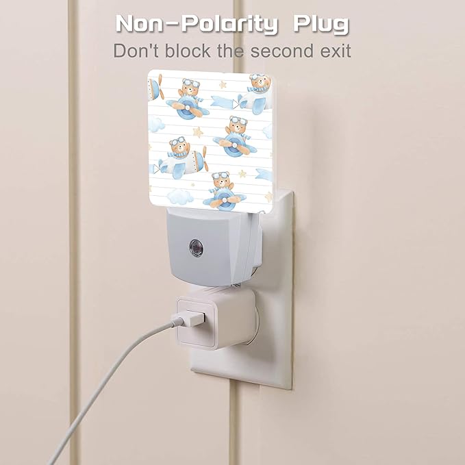 Cute Adventure Bear in Airplane Night Light, Cartoon Animal Dusk to Dawn Night Light Plug in,0.5w Energy Saving Sleep Friendly NightLight for Kids Boys Girls Home Decor