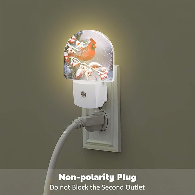 Winter Red Cardinal Bird Night Light for Kids,Christmas Pine Tree Snow Cardinal Night Light Plug in with Dusk to Dawn Sensor,0.5w Energy Saving Nightlight for Hallway Stairway Kitchen Bedroom