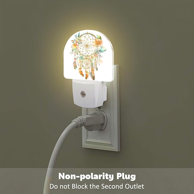 Boho Dream Catcher Flowers Night Light, Watercolor Boho Feathers Floral Dusk to Dawn Night Light Plug in, 0.5w Energy Saving Sleep Friendly NightLight for Kids Boys Girls Home Decor