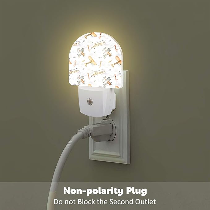 Funny Cartoon Airplanes Night Light, Retro Watercolor Planes Dusk to Dawn Night Light Plug in,0.5w Energy Saving Sleep Friendly NightLight for Kids Boys Girls Home Decor