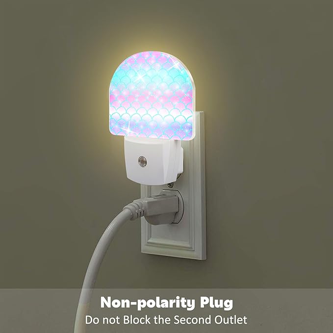 Rainbow Glitter Mermaid Scales Night Light Plug into Wall,Watercolor Pink Purple Teal Fish Scale Dusk to Dawn Night Light,0.5w Energy Saving Nightlights for Kids Boys Girls Home Decor
