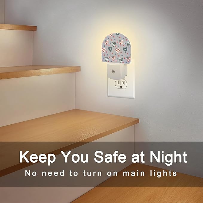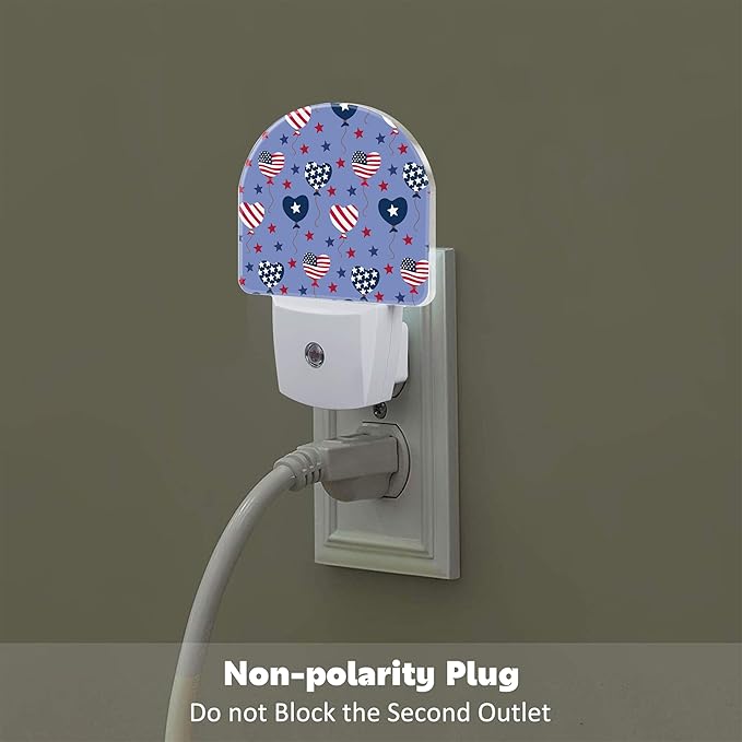 USA Flag Balloons and Stars Night Light Plug into Wall, American Patriotic Flag Dusk to Dawn Night Light Plug in,0.5w Energy Saving Sleep Friendly NightLight for Kids Boys Girls Home Decor