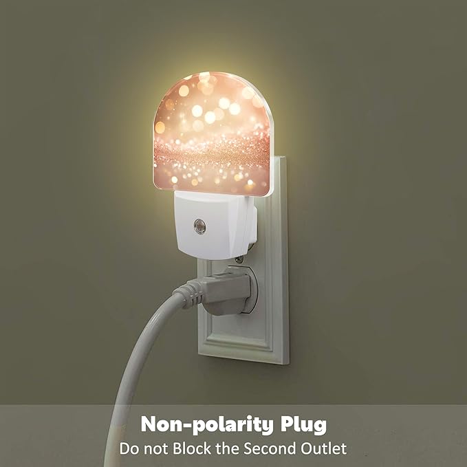 Rose Pink Glitter Night Light, Gold Sparkle Shine Bling Dusk to Dawn Night Light Plug in,0.5w Energy Saving Sleep Friendly NightLight for Kids Boys Girls Home Decor
