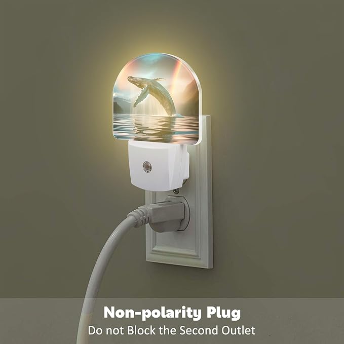 Jumping Whale Night Light for Kids, Ocean Marine Life Rainbow Night Light Plug in with Dusk to Dawn Sensor, 0.5w Energy Saving Sleep Friendly Nightlight for Hallway Stairway Kitchen Bedroom