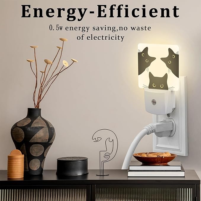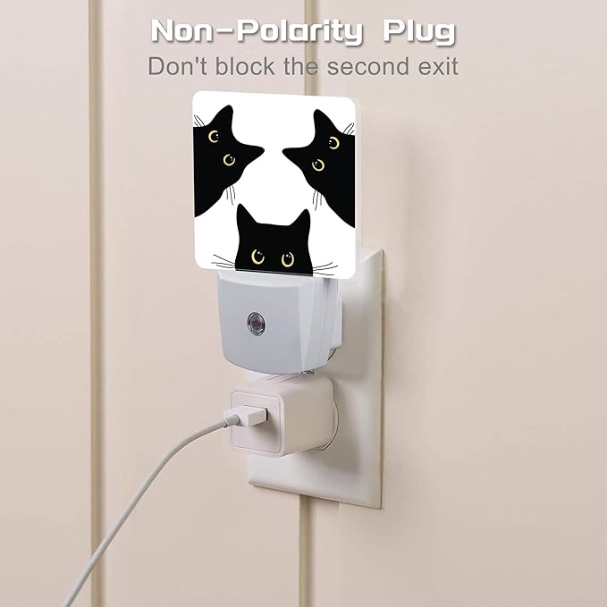 Funny Black Cats Night Light, Cute Kittens Dusk to Dawn Night Light Plug in,0.5w Energy Saving Sleep Friendly NightLight for Kids Boys Girls Home Bedroom Living Room Decor