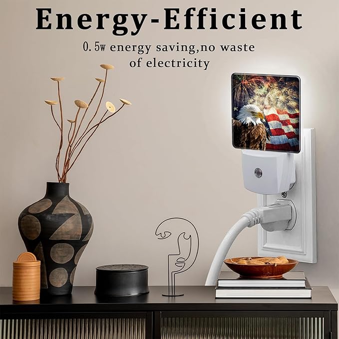 USA Flag and Bald Eagle Night Light Plug into Wall, American Patriotic Eagle Dusk to Dawn Night Light,0.5w Energy Saving Sleep Friendly Nightlights for Kids Boys Girls Home Decor