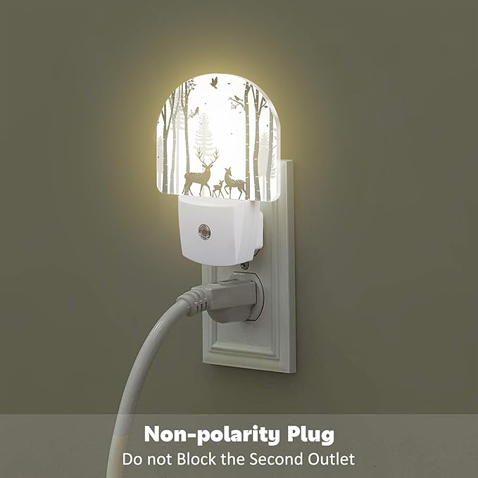 Deer in The Forest Night Light, Birch Tree with Deer Dusk to Dawn Night Light Plug in,0.5w Energy Saving Sleep Friendly NightLight for Kids Boys Girls Home Decor