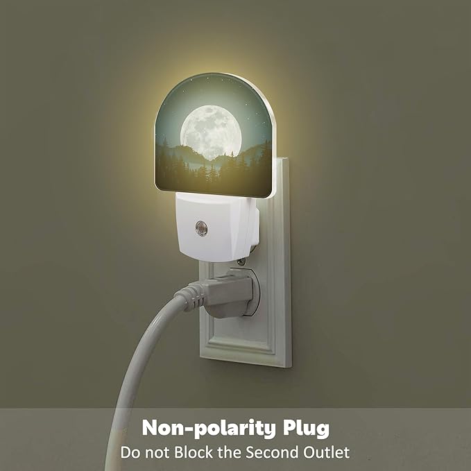 Full Moon and Misty Forest Night Light Plug into Wall, Starry Sky and Forest Dusk to Dawn Night Light,0.5w Energy Saving Sleep Friendly Nightlights for Kids Boys Girls Home Decor
