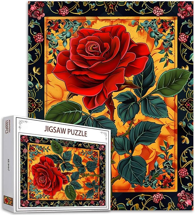 1000 Piece Jigsaw Puzzles for Adults Red Rose Painting Jigsaw Puzzle Floral Patrern Surraunding 1000 Pieces Puzzles for Game Green Plant Colorful Art Wall Decor DIY Craft Puzzle Gifts 27" x 20"