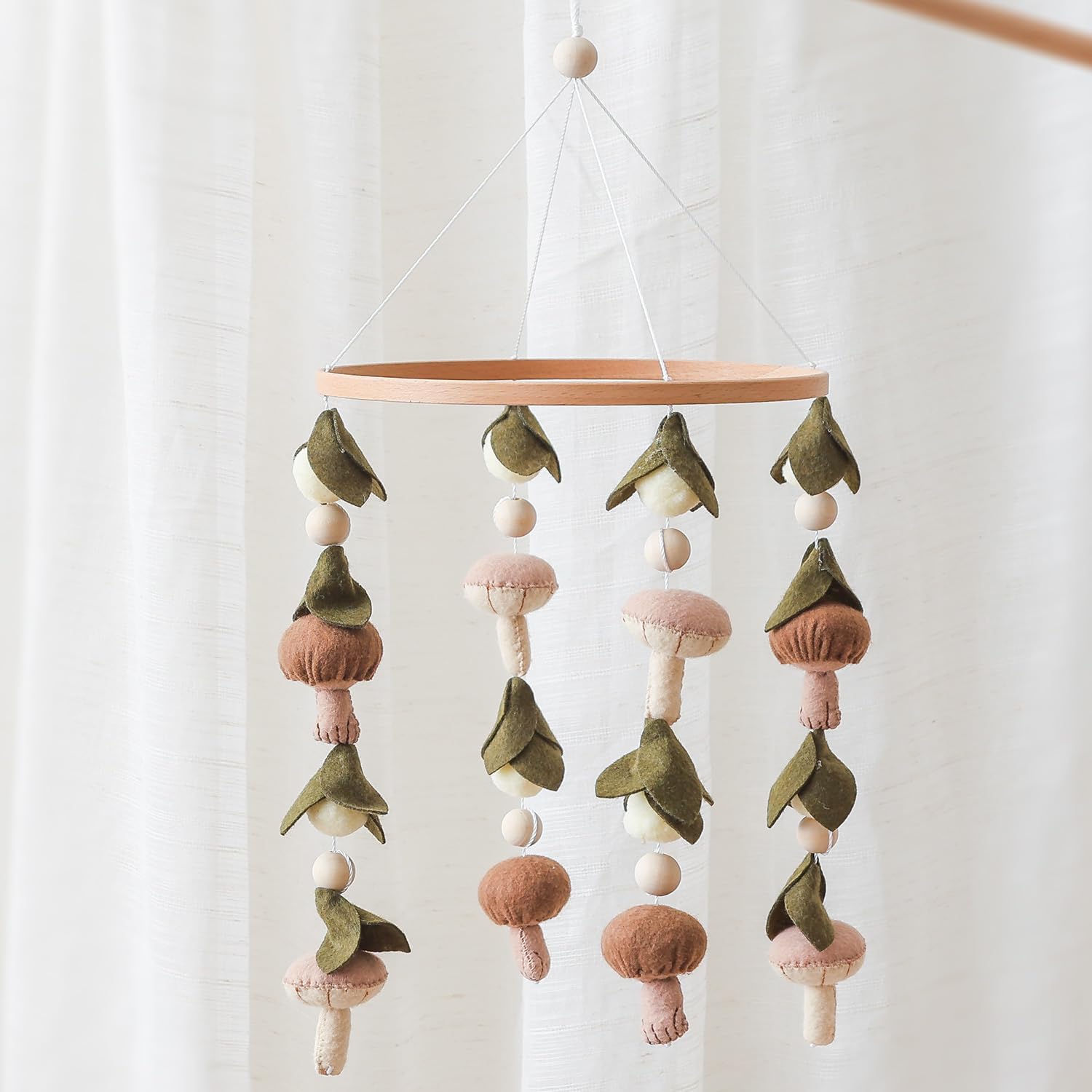 Baby Mobile for Crib,Crib Mobile for Boys Girls, Soft Crib Toys Hanging,Baby Mobile for Bassinet,Boho Nursery Decor Neutral(Mushroom,Leaves,Cotton)