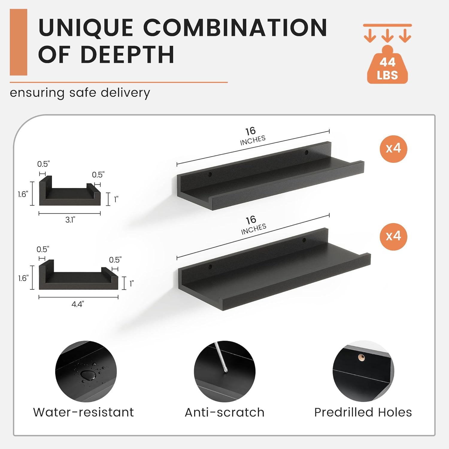 - 【Picture Ledge Perfect for Display】FLYJOE picture ledge shelves for wall turn your walls into a stunning photo gallery! These spacious shelves are ideal for showcasing a variety of picture frames in one secure place. With a thoughtful protective lip, you can display everything from photos to collectibles without worrying about them falling off