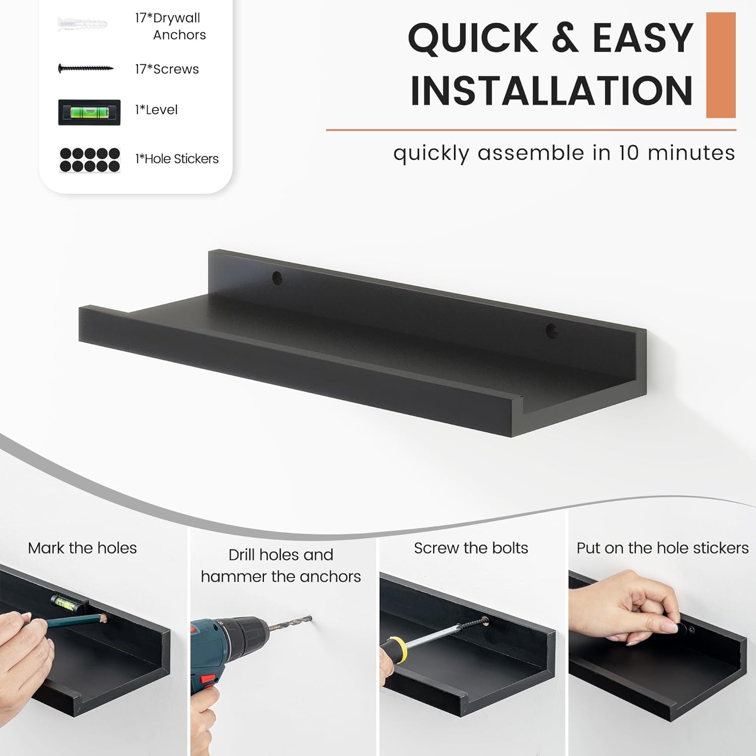 - 【Easy to Install】FLYJOE picture ledge shelves are quick and easy to install! Each set comes with pre-drilled holes and all necessary hardware, including a mini level for perfect alignment. With simple instructions, you can have your shelves up in minutes, allowing you to start decorating right away
