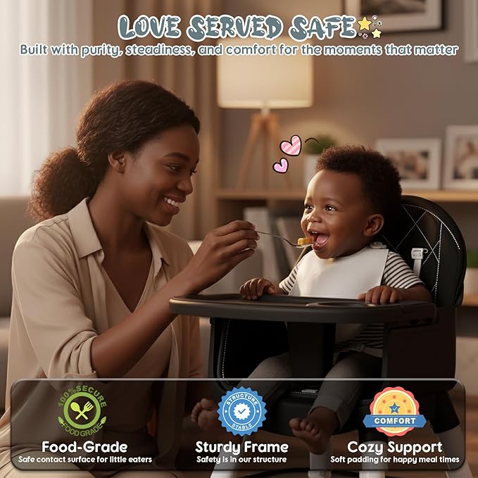 - 【US CPSIA & ASTM Approved】Made of non-toxic and food-grade PP material, this baby high chair is free from harmful substances such as BPA, PVC, Phthalates, Lead, Latex, and Formaldehyde. It has no sharp points or edges, and has passed tests for stability, asphyxiation, load, and shear.