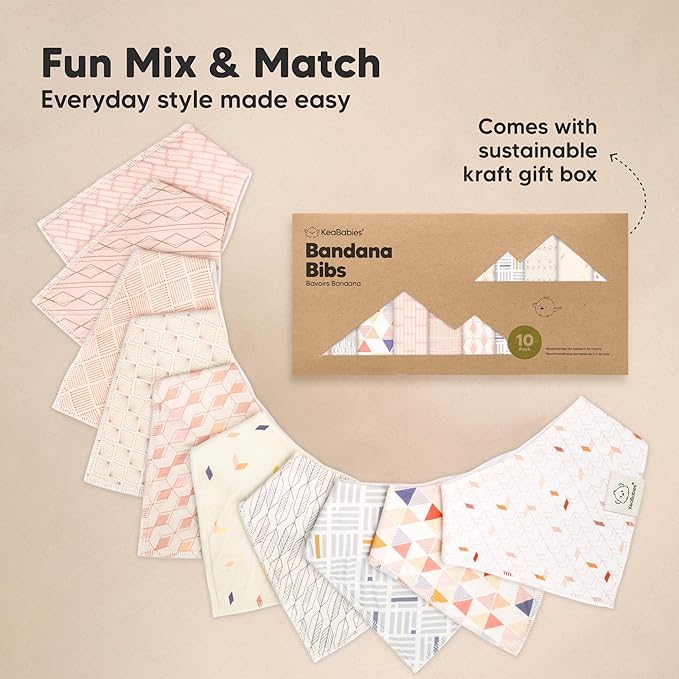 - Style Meets Function - Our KeaBabies soft edged triangle shaped bibs for baby boy and girl provide full coverage from your little one’s neck to torso, preventing baby's drool from getting in contact with your baby's sensitive skin. Style your baby boy or girl effortlessly with our modern looking bandana bibs!