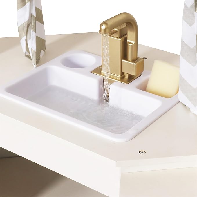 - Play with real water with circulation system! A wooden kitchen toy for children with an interactive tap is a HIT among little chefs! The tap, from which real water flows when turned on, just fill the sink and enjoy endless fun!