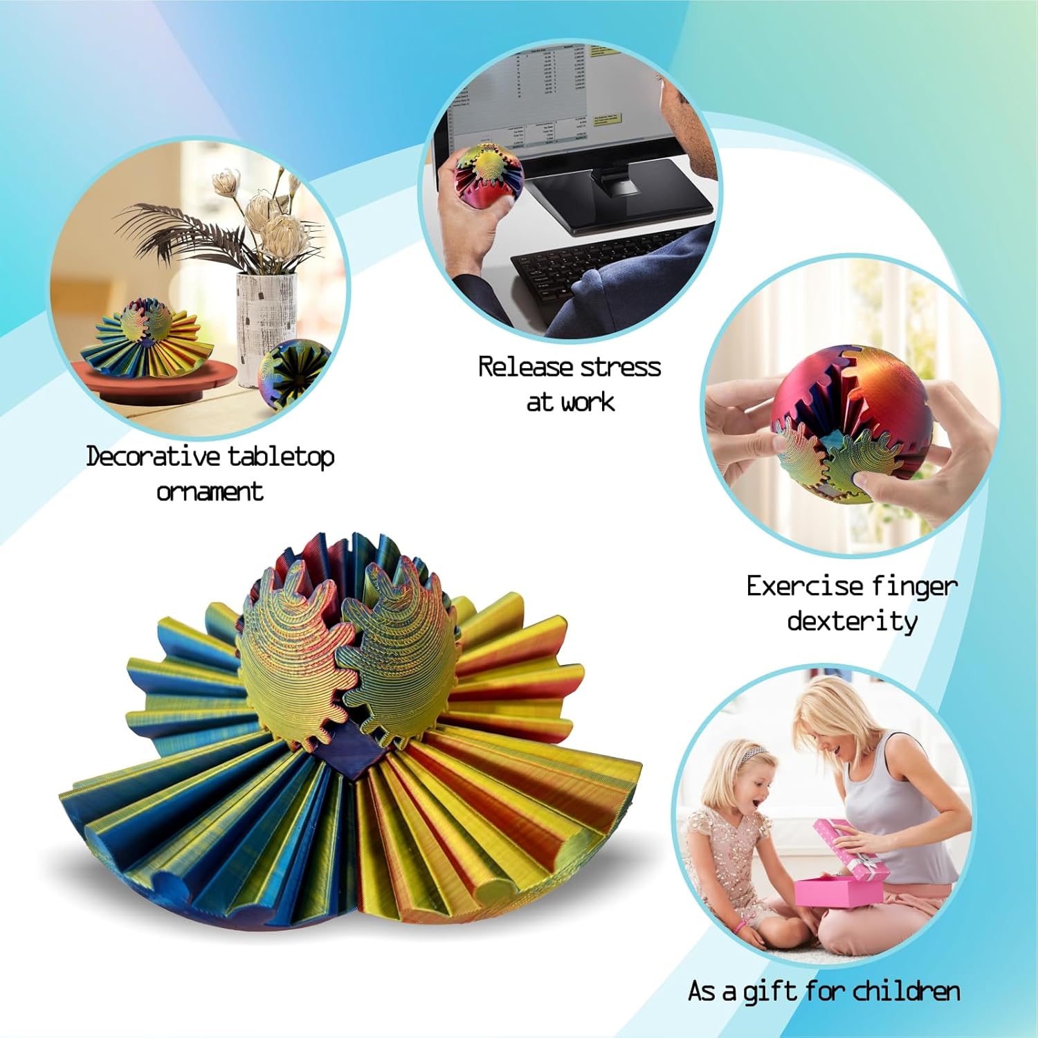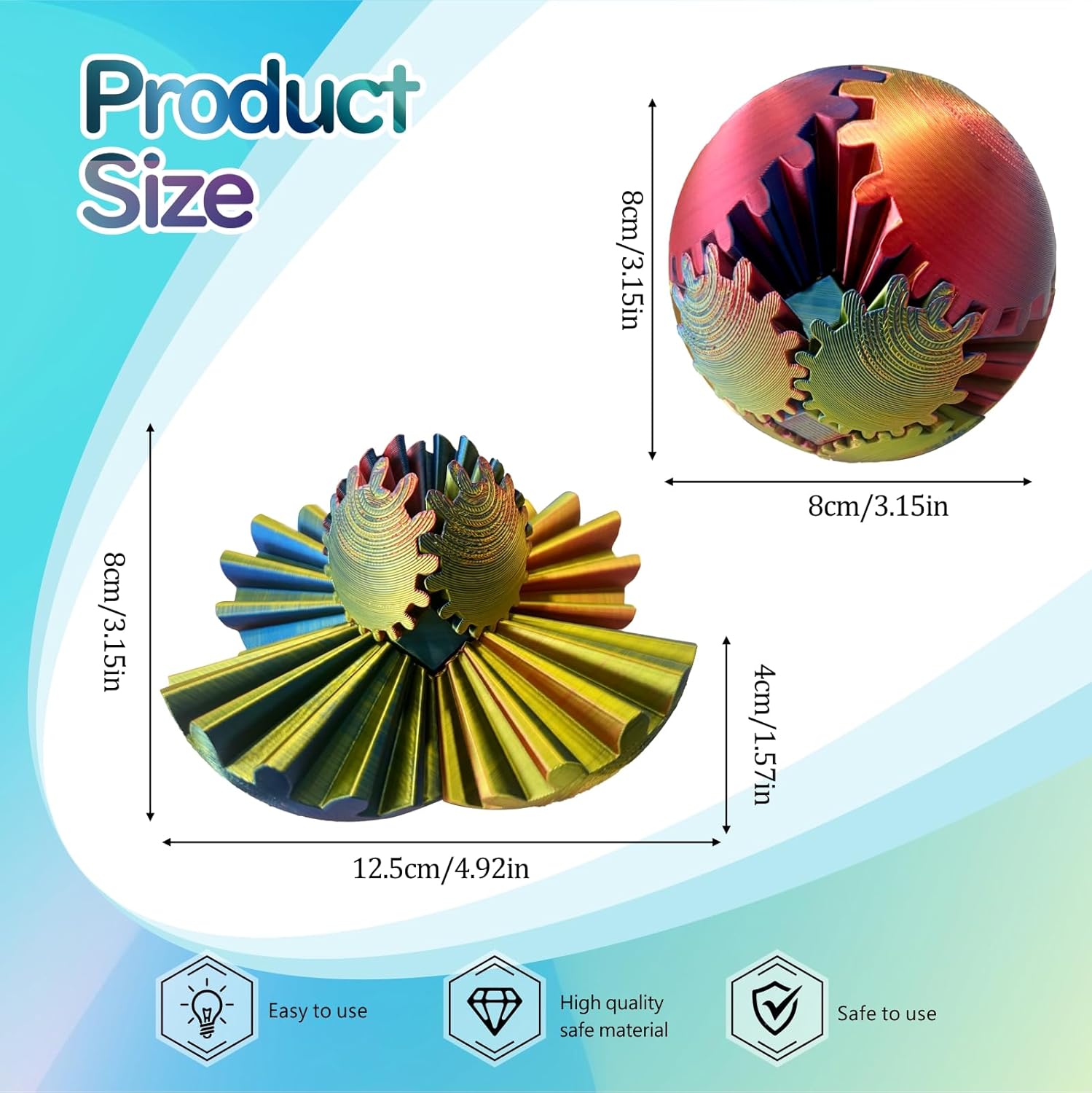 - Fascinating 3D Printed Gear Ball: This 3D printed gear ball spin ball is an innovative finger toy designed to provide stress relief and anxiety relief. The gear ball fidget toy stands out for its unique assembly design, which attracts your hands, mobilizes your mind, and eliminates stress with every satisfying turn.