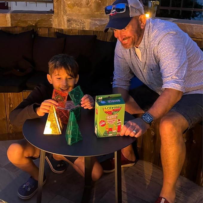 CreateOn Crayola Holiday Glitter Magnetic Tiles, Building Set for Kids, Magnetic Building Toys for Kids, STEM Travel Toys for Boys and Girls Ages 3+, 14-Piece Set (Holiday Glitter)