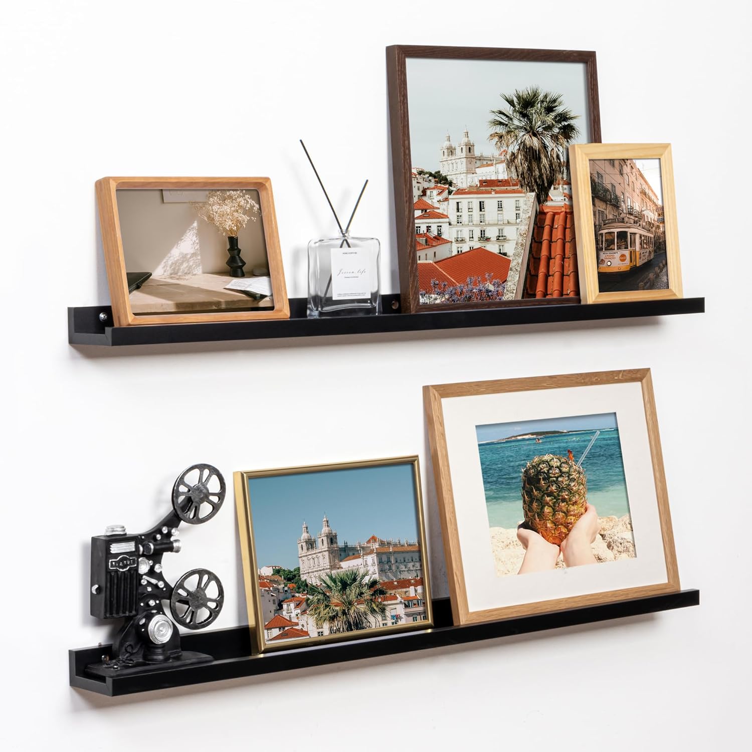 Fun Memories Picture Ledge Shelf, 36 Inch Floating Shelves Set of 2, Nursery Book Shelves for Toys Storage, Kids Bookshelf Wall Mounted for Wall Decor Books Photo Frames, Black