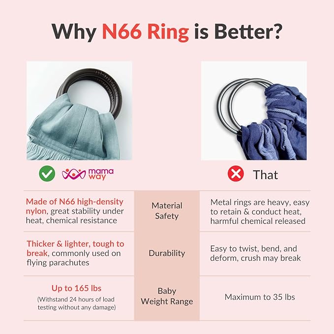- CALM AND PEACEFUL BONDING Mamaway Baby Ring Sling is designed to support close bonding with your baby from their earliest days through various stages of growth. This adjustable, one-size sling allows you to carry your baby securely while keeping your hands free for daily tasks. Ideal for soothing, breastfeeding, and snuggling, this hands-free design ensures comfort for both you and your baby.