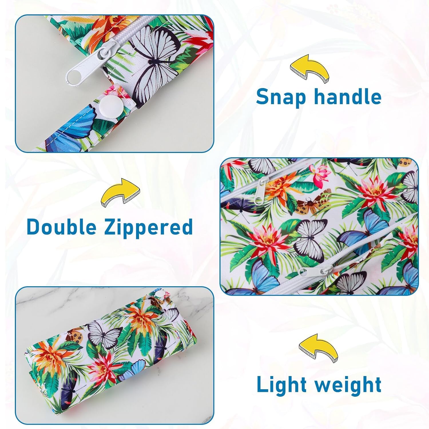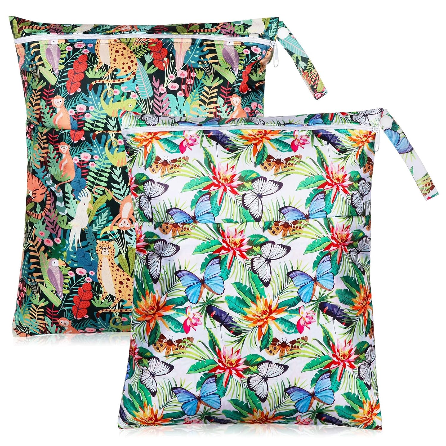 Angel Love Wet Bags for Baby, 2pcs Waterproof Wet Dry Bag for Diaper Baby Cloth Gym Clothes Washable Travel Bags for Beach Pool Swimsuits Pockets with Zippered Dirty Diapers Stroller Organizer L0203