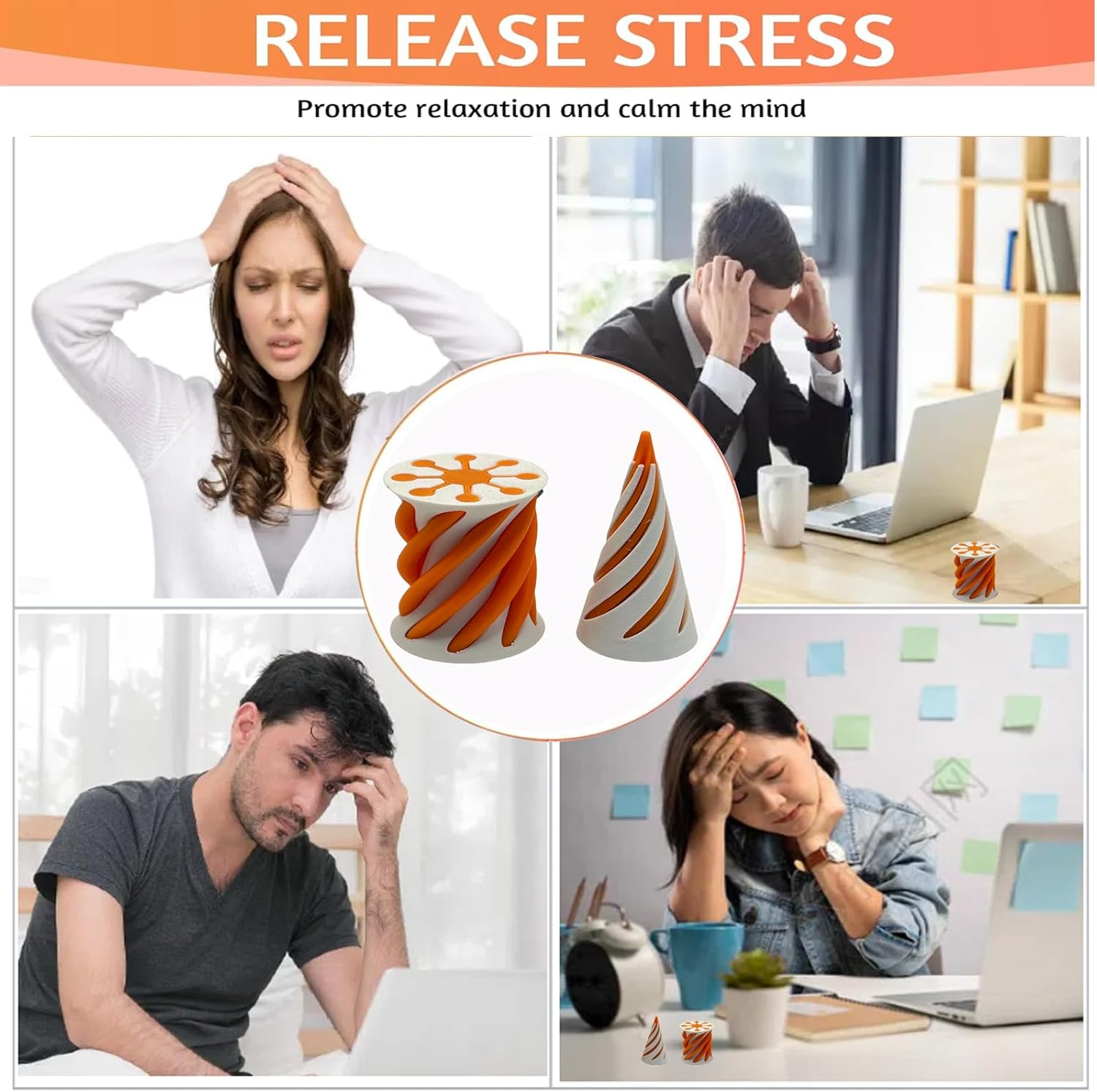 Impossible Pyramid Passthrough Sculpture - 2Pcs 3D Printed Spiral Cone Fidget Toy, Stress and Anxiety Relief Toy, Pass Through Pyramid Fidget Toy for Adult Children (Orange)