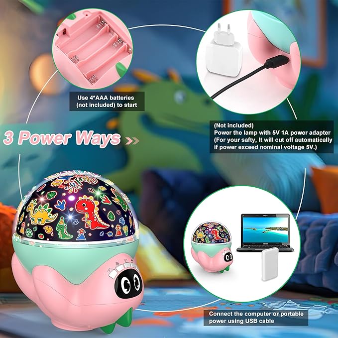 - 2024 NEW Unique Dino Design with 2 Projection Themes: We designed the shape based on the dinosaur shapes that children like. It comes with a cute dinosaur and starry sky pattern film. It shows your kids amazing visual effects and brings a lot of happiness to the children. It is the perfect gift for kids who love dinosaurs and the stars moon